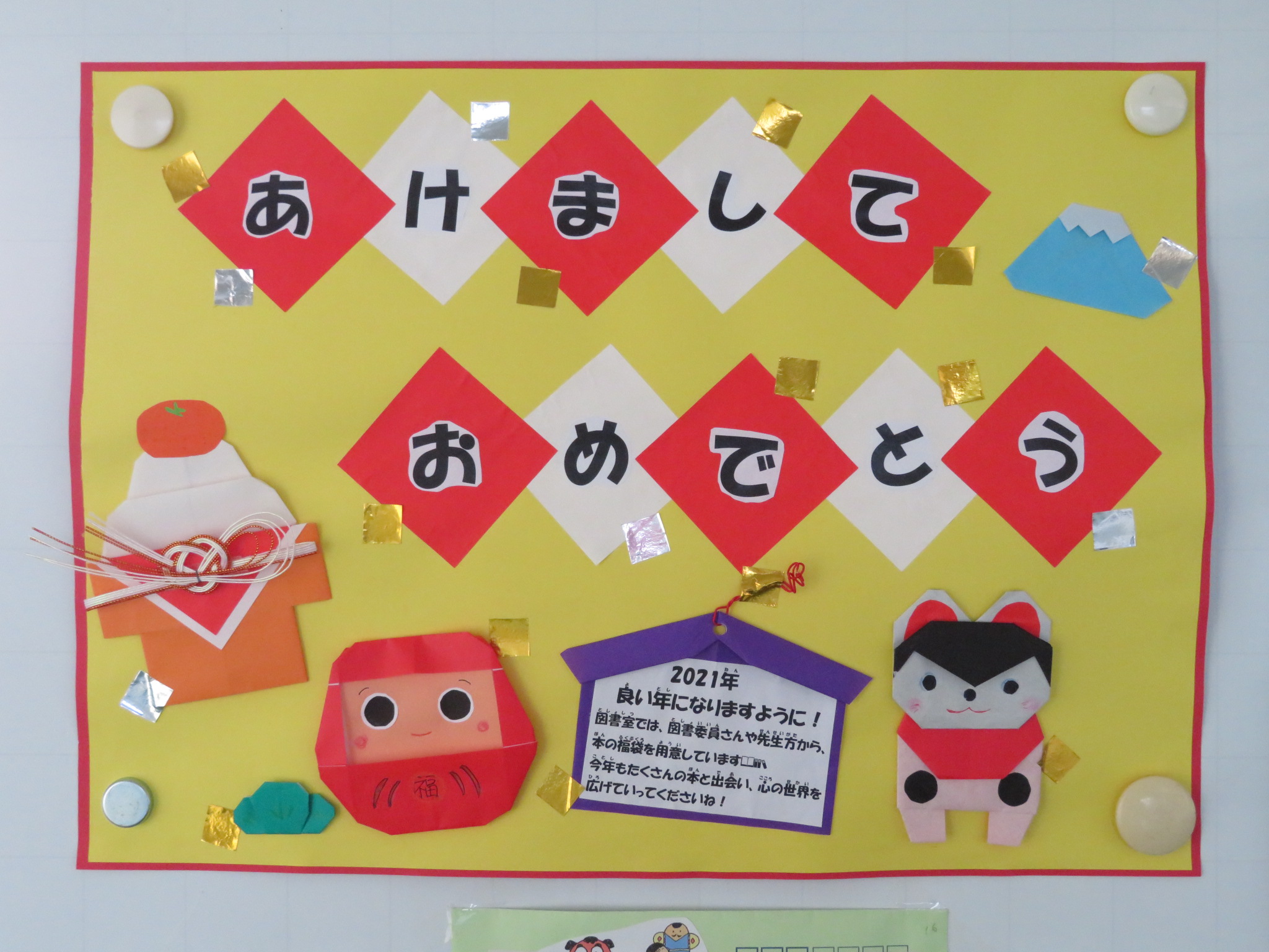 令和3年が始まりました。本年もよろしくお願いいたします。 1月8日に始業式がありましたが、すぐに三連休となりました。 今日から本格的に三学期の始まりです。 学級では、係りを決めたり席替えをしたりして気分を一新して います。 図書室は、新春モードに変わっています。 今年も 本の福袋を置いています。