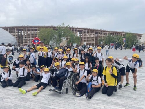 楽しみにしていた、大阪・関西万博に行ってきました。朝7時に6台のバスが粉河ふるさとセンターから出発し、夢洲へ。大屋根リングの上から、会場全体を見下ろし、それぞれパビリオンにも入って来ました。高学年は、グループで自由に観覧したり、低学年は霧のシャワーを楽しんだり、コモンズ館で自由に観覧したりしました。広い万博内を1,2年生も最後までしっかり歩いてとても頑張りました。ミャクミャクが見えると、大喜びではしゃいでいた子供達もいました。お家の方々には朝早くからお弁当を作ってもらったり、送迎してもらったり・・・ご協力ありがとうございました。1年生から6年生まで、みんなで万博に行けて、とってもよい思い出になりました。