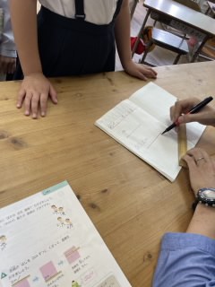 2Bは定規で決められた長さの直線を書き、先生に丁寧に確認してもらっていました。