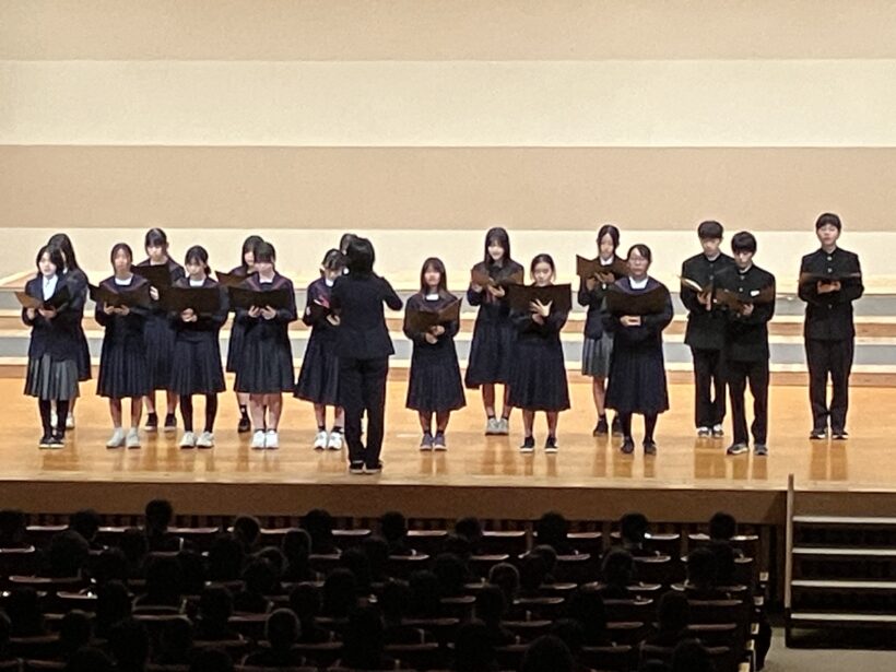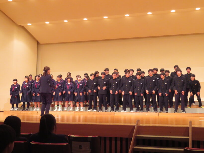 毎年恒例の那賀地方小中音楽会が行われ、本校からは音楽部と3年生が出場しました。音楽部は合唱を3年生は合唱とボディーパーカッションを披露しました。どちらも素晴らしい発表でした。3年生は荒中フェスティバルでも発表してくれます。