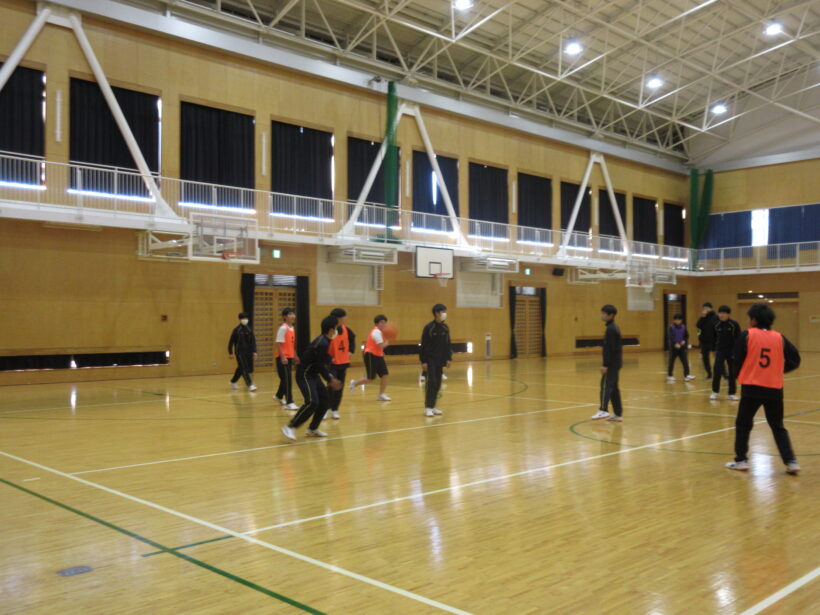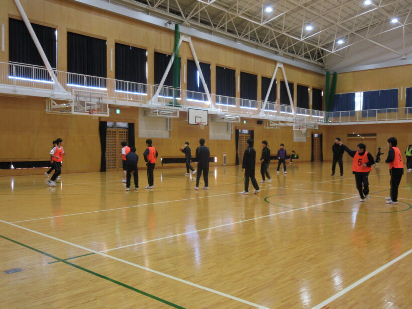 2年生がバスケットボールをしています。バスケ部はさすがの腕前です。男女分かれてのゲームですが、どちらも迫力あるゲームです。「先生もやろう!」と誘ってくれますが、この迫力の中に入るのはかなり勇気を要します(;^ω^) まだまだケガなく、健康に過ごしたいので丁重にお断りしました(;´∀`)