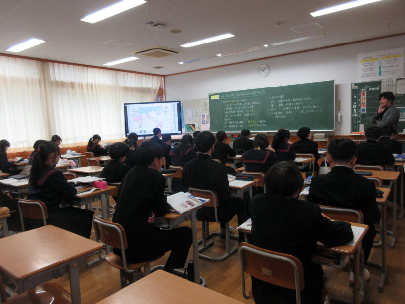 2階では社会の授業。周りが気になってキョロキョロしてしまう人がいますが、私はあなたのキョロキョロが気になります(笑)