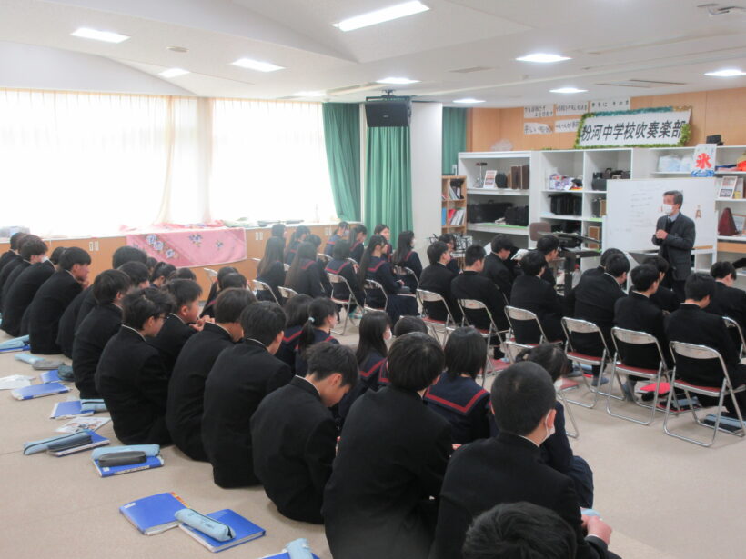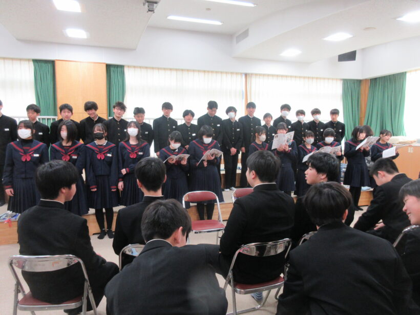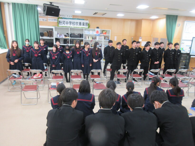今日、3年生の歌声を次の粉中の顔となる2年生に引き継ぐための、スペシャル合同音楽の授業があります。
