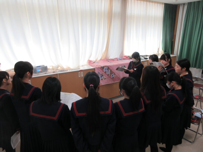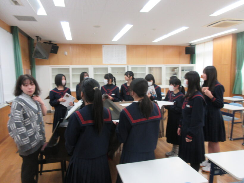 先輩たちが音程をリードしてくれることもあり、しっかり先輩にサポートしてもらえています。この調子で、少しずつ2年生も1年生をリードしていけるようになるといいですね。3年生のみなさん、それまで後輩たちを見守ってやってください<m(__)m>