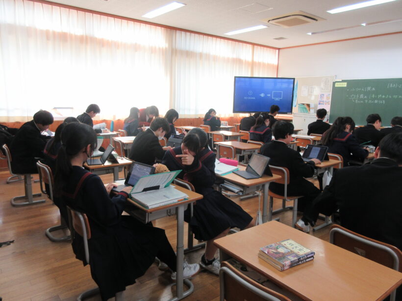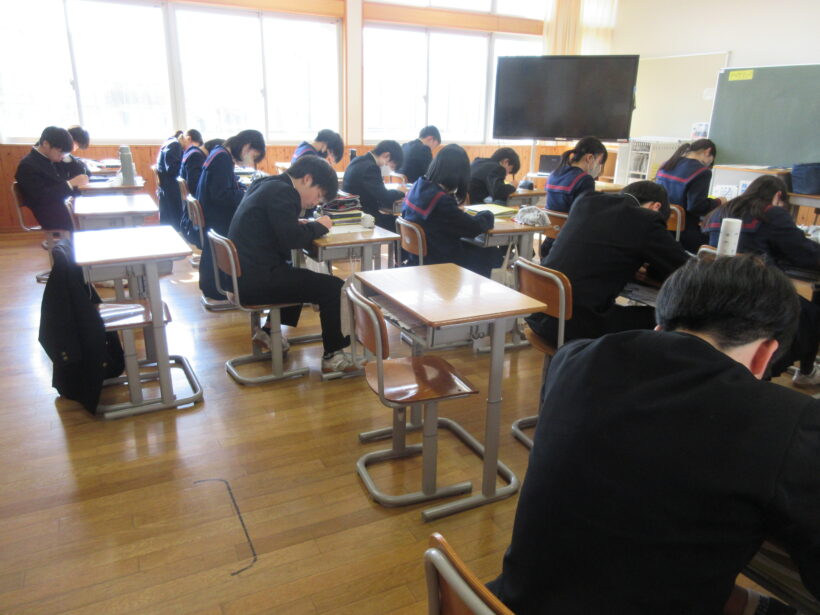 公立の特色化選抜や私学の入試がいよいよ始まっていくせいか、教室はピリッとした空気です。でも分からない時は友達に聞いていいよ、となると自分はこう考えたとか、この考え方もアリやな…といったような会話が聞こえてきたり、この問題は前にやったこの考え方でええんちゃう?と教える声が聞こえたりと、一気に和気あいあいと学習する空気に変わります。