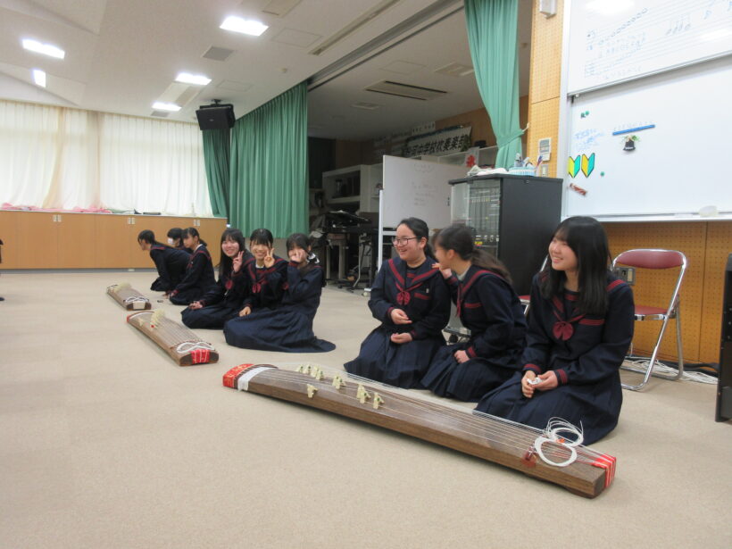 そんな1年生は音楽、英語、体育の授業です。箏を前にテンションがあがりますが、そこは和楽器。ちょっと大人しめにお願いします(;^ω^)