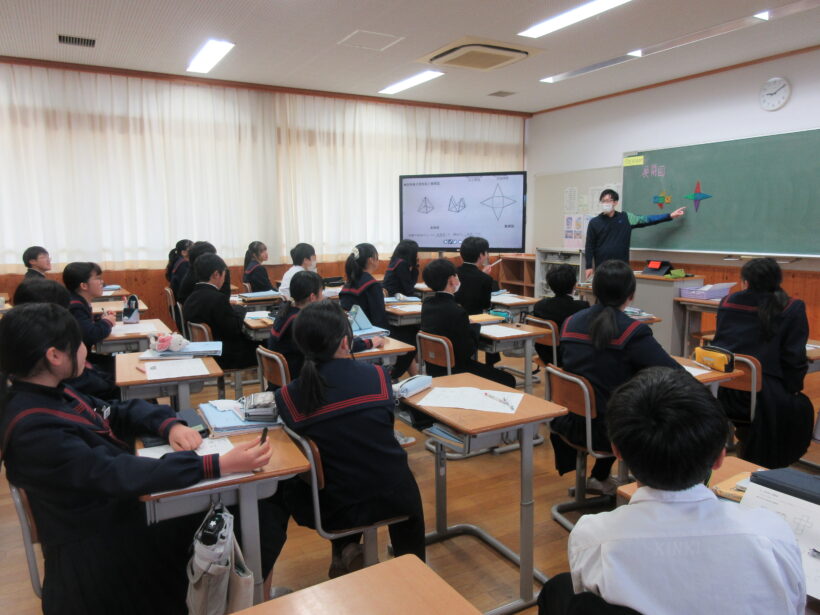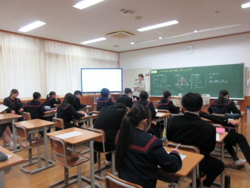 三角すいの展開を考えるために、模型を使うと沸き上がる歓声(;^ω^) 黒板に貼りつくだけで「おぉ~っ」と声が上がります。 ただマグネットで付いているだけで、みんなの注目を浴び、歓声まで上がるなんて、三角すい模型へのリスペクトが止まりません(笑)