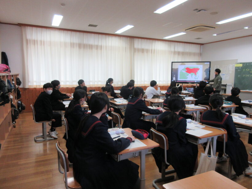 運動、芸術、学習と、どんなことにも一生懸命に取り組む粉中生。あれ?とあるクラスの後ろの方の席に「今日は」たまたま遅刻してしまった人が並んで座っています。「遅刻したら後ろの席なん?」と聞くと、「僕は遅刻なんてしてませんよっ!」とお互いに売り合うひどい有様(;^ω^)
