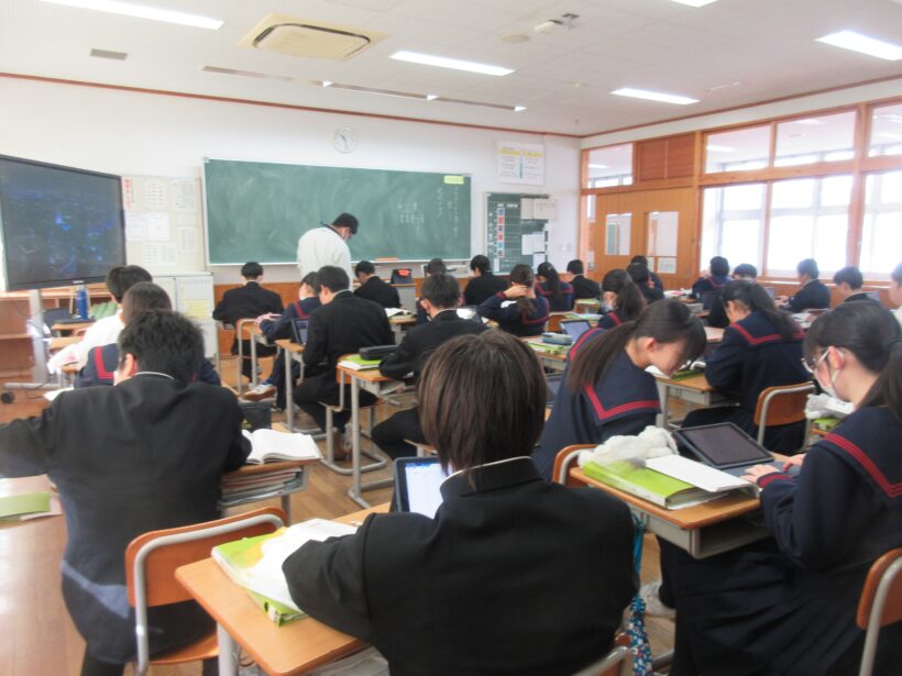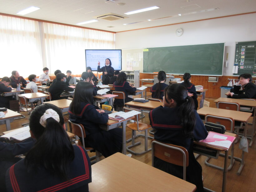 1年生は英語、社会、数学。英語では学校行事について英語で表現しています。体育祭→sports festival、交流イベント→○○ event、と軽快にやりとりしていると、音楽祭→music station、Mステ… とすでにただの番組名になっていくわ、festivalがフェスになるわです(;^ω^) しかもフェス⤴の発音(;´∀`)