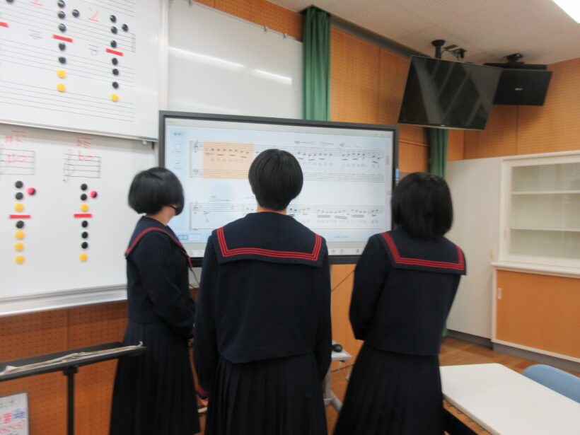 3年の音楽。リコーダーで「ファ」の音を出すはずが、運指が微妙に違うのか「ファ」ではなく「フォ」になっています(笑) でも歌は完璧。パート別の練習で人数が足らないから先生も一緒に入って歌おう!と誘っていただきましたが、声の大きな君たちなら、足らないことも気付けません(;^ω^)