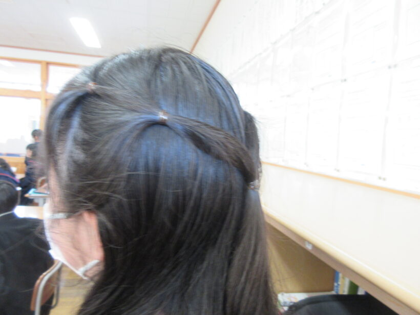 朝の登校時から、このかわいいまとめ方が気になって、外で絡んでしまいました(;^ω^) 寒い中なのに、すみませんでした<m(__)m>