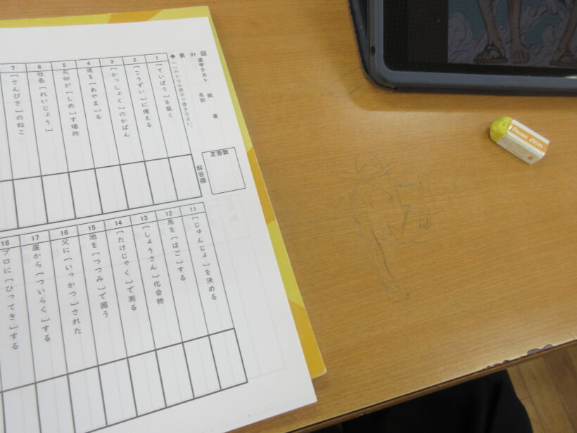 2年生は漢字テストの練習問題。難しい漢字がいっぱい。読めるけど書けないシリーズ?のような感じがしますが、勉強家の2年生は教えて!と声をかけるとスラスラ書けるようです。