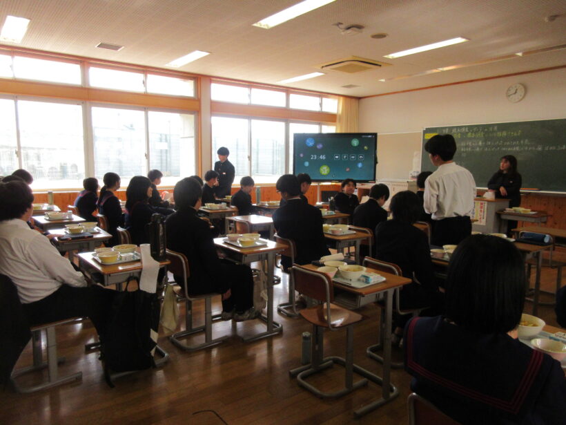 残り少なくなってきた給食回数。「バレンタインチョコがいいのに~」とかグチグチ言うてないで、バランスのとれた給食をしっかり食べてください。