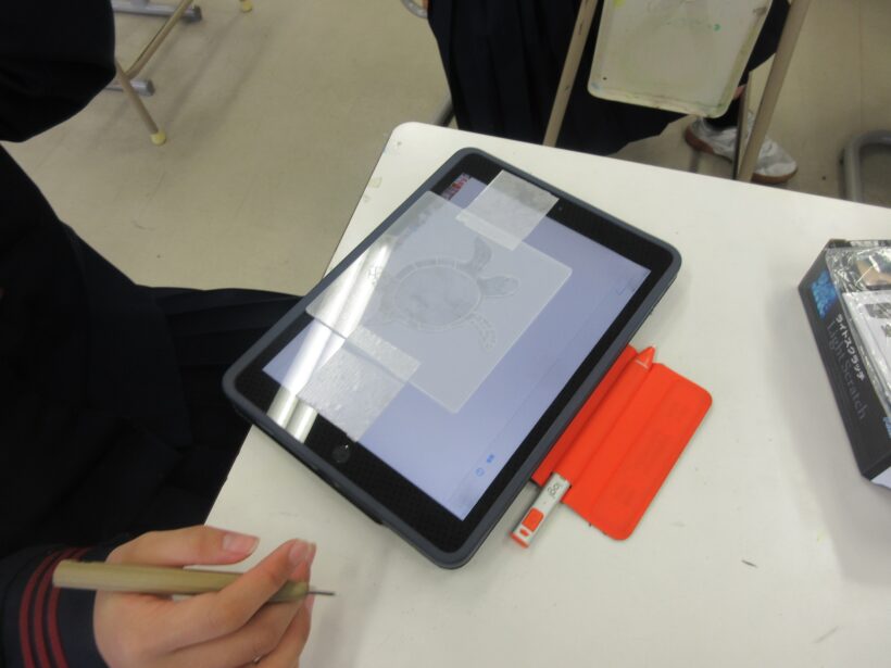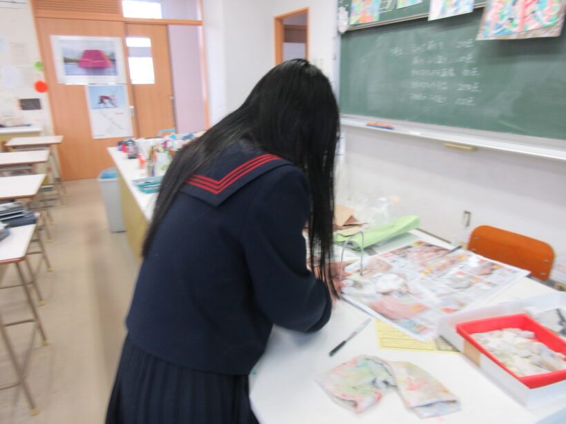 色んなデザインで自分の作品を製作してきた3年生の美術。もうまさに卒業記念製作という時期です。