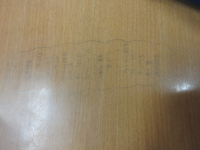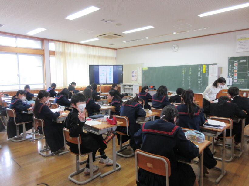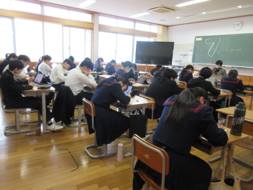 3年生は体育で発散しているクラスと、入試対策しているクラス、そして机に落書きしている人…