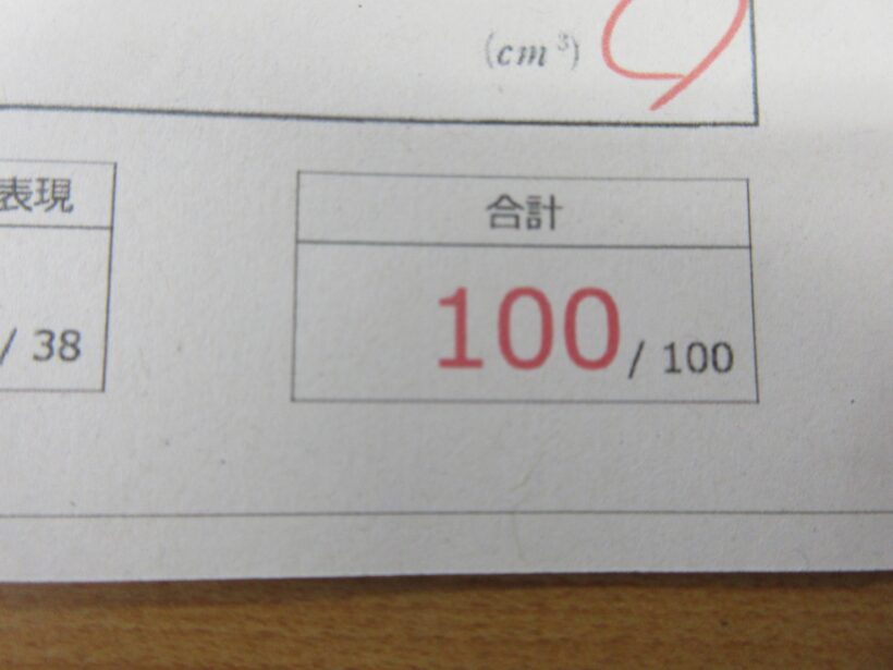 その近くで、「先生!私も100点やで!」と見せてくれた答案用紙。どう見ても〇の数と点数が比例してないよ(;´∀`)