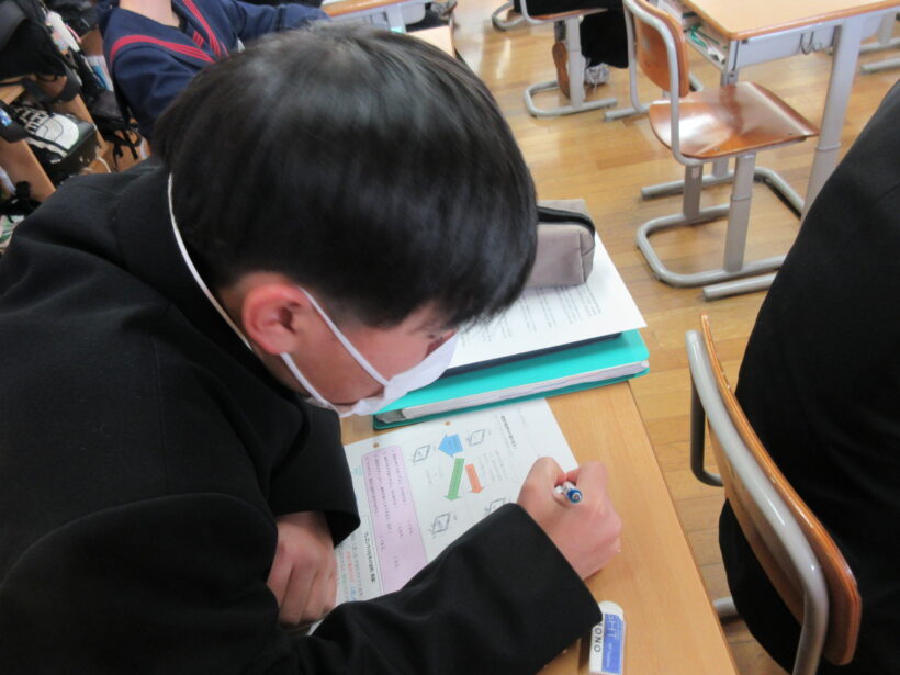 まずは2年生の理科と道徳。動画で磁石の動きを確認しながら、ワークシートに書き込んでいるようです。どのくらい書けているのかなぁとのぞくと、「名前撮られるから、書き直しますっ!」とワークシートの答えじゃなくて、適当に書いてしまった自分の名前を書き直しています(;^ω^) え?答えが間違っていないか、そっちは気にならん?