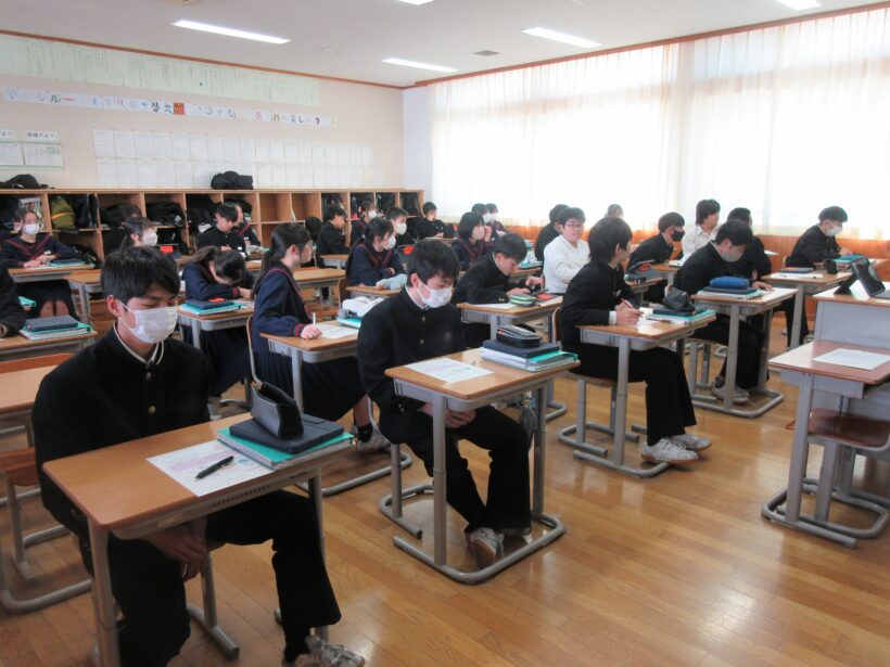さて、朝から雲一つない快晴です。そのうえ、全ての部活動がお休みのため、午後から友達同士で遊ぶのか、予定について話している人達がいます。友達と楽しく過ごす時間を楽しみに、気持ちを切り替えて授業に集中している(はずの)1・2年生を見に行きます。