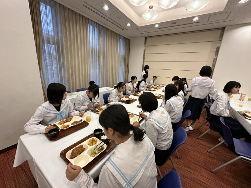 朝からモリモリ食べられる若いみんな。いいねぇ。この後、部屋の片づけをしてチェックアウトです。