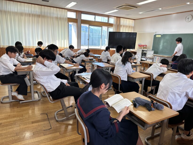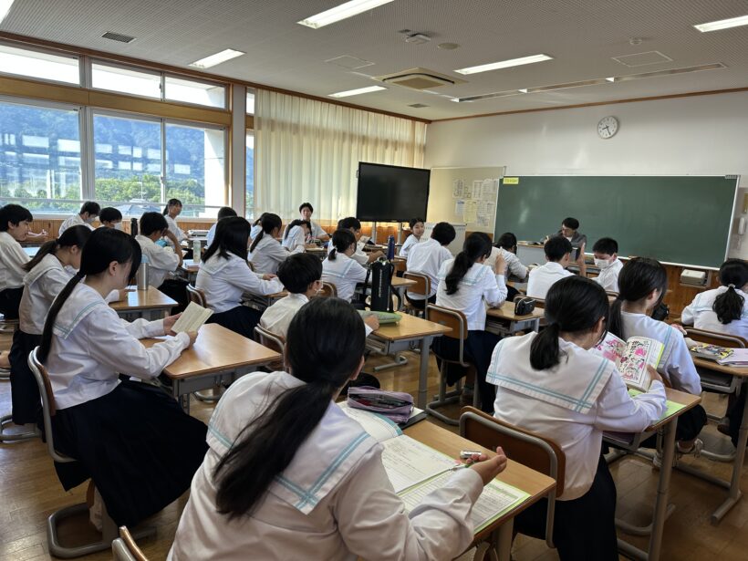 朝の会まではいつも通り、とても賑やかだった2年生。私を見るなり「先生!修学旅行楽しかった?」と尋ねてきます。「楽しかったで!万博はどうやった?」と聞くと、「楽しかったけど、めっちゃ疲れたわ~」と答えてくれます。お互い楽しんで、疲れた~と話していますが、来年はまた一緒に楽しみ(それと疲れ)に行きたいね( *´艸`)