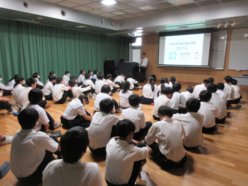 今日、1・2年生の家庭科の授業に近畿農政局から出張講座にお越しいただき、食について学びました。