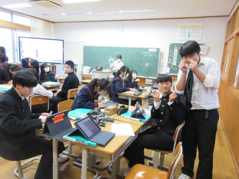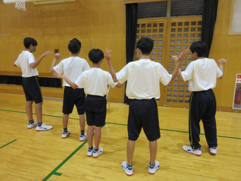 体育ではグループに分かれてダンスの練習。中には万博のダンスを覚えようと頑張っているグループもあります。自分たちには分かるリズムとカウントと覚え方。独特過ぎてクセつよです(笑) 色んな強さのある粉中生ですが、寒くなってきているので、風邪や感染症にも耐性ができてほしいです(*^_^*) 皆さん、身体をお大事に~(^_^)/