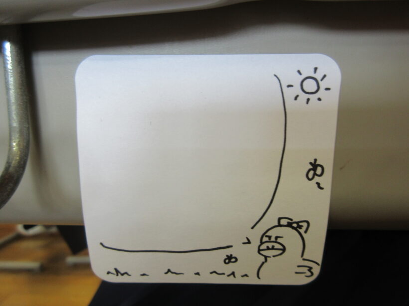 教室のあちこちに散らばって貼られているメモ。これがあちこち飛んでいる方が気になる…(;^ω^)