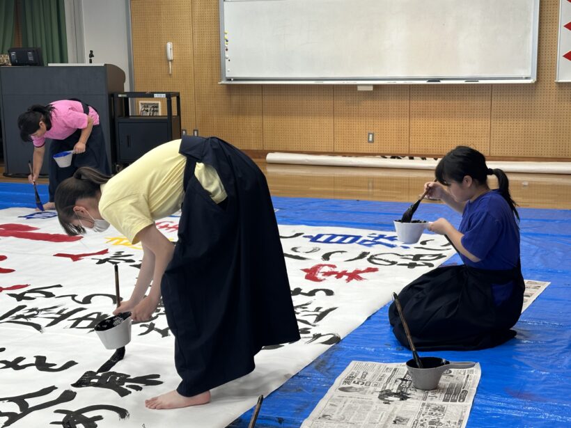 また、室内では市制20周年イベントの書道パフォーマンスの練習。
