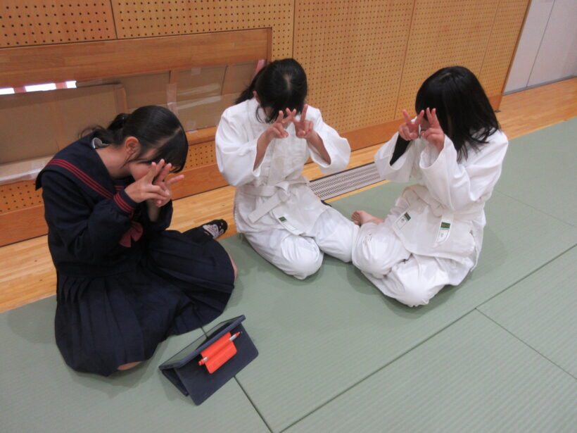 2年生は英語と体育。体育の柔道では技の練習をする前に、基本の確認をしています。もちろんケガのないよう、技のかけっぱなしのないように♪