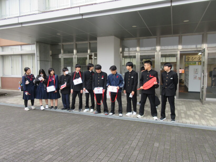 今日、明日と生徒会を中心に、ボランティアが参加しての募金活動を行っています。