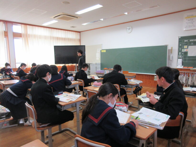 さて、明日から期末テストが行われますが、今日の授業では多くがテストに関することをしています。