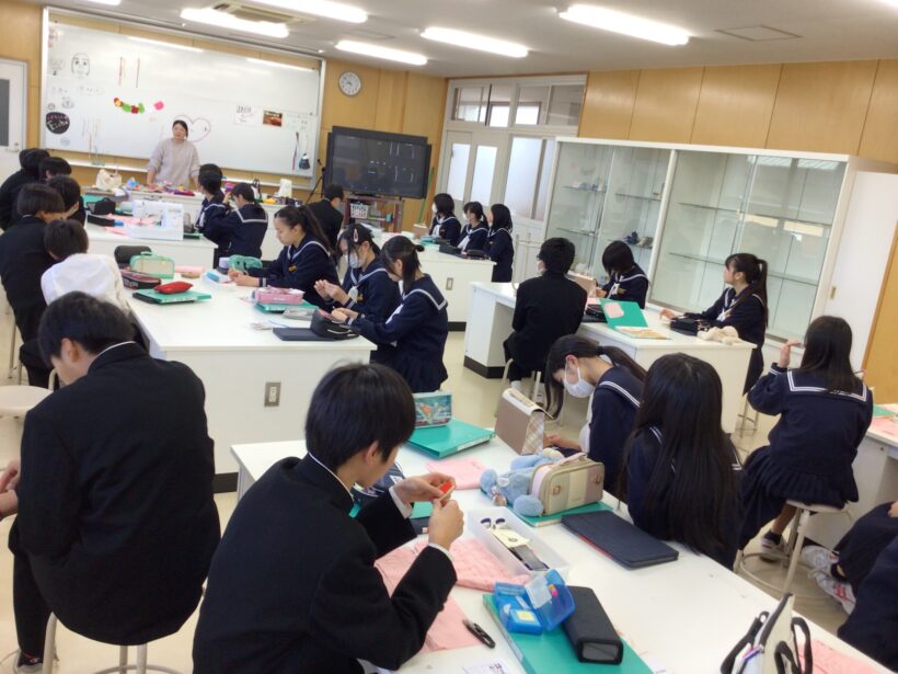 【1年生家庭科】運針の練習を皆さん集中して取り組んでます。だんだん上手になってきましたね。😃