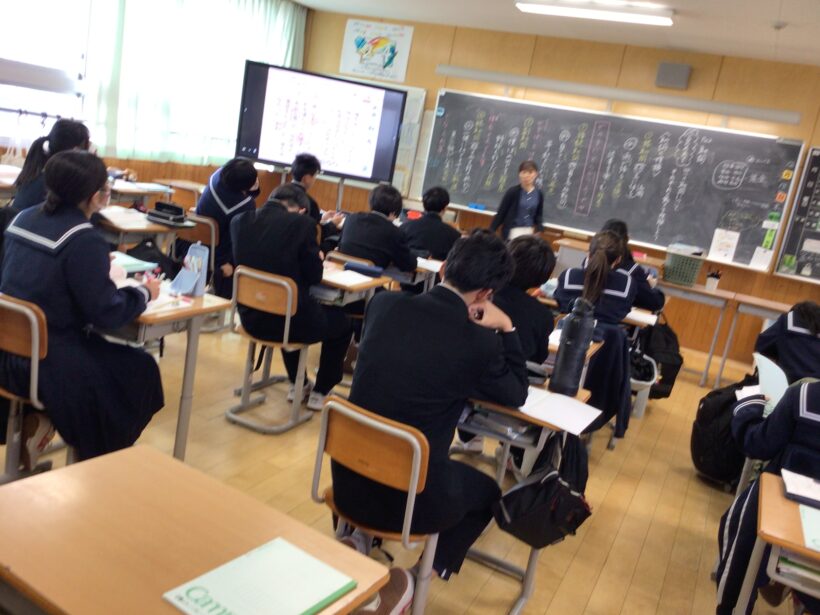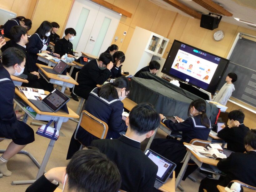 【2年生英語科】冬休みの予定をまず5つ挙げて、それを英語で答える練習をしていました。