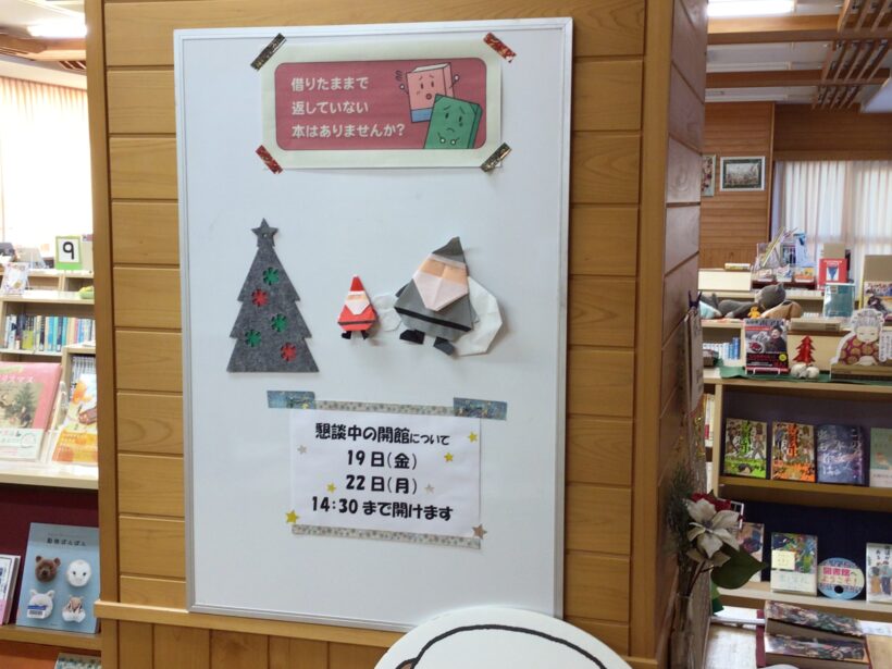 【図書室から】クリスマスムードたっぷりのディスプレイです。🎄冬休み前に本を選んでみるのはいかがですか?