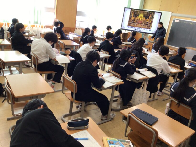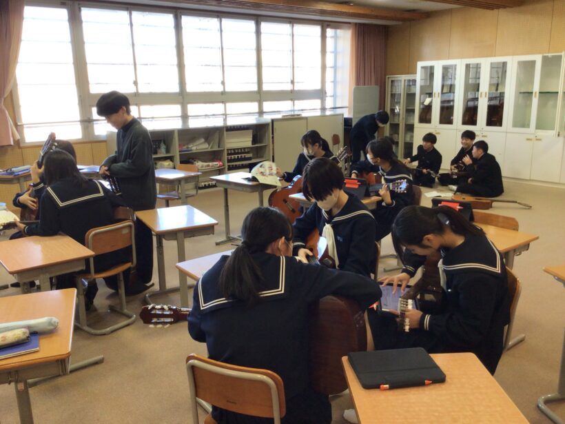 【3年生音楽科】ギターの練習をグループで行なってました。私も中学時代に弾いてみたいと思いましたが、諦めてしまいました。