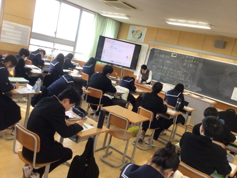【3年生数学科】「円の性質の利用」に取り組んでました。そんなに難しいことではないのですが、図形の問題というだけで苦手意識を持っている人も・・・。そこは頑張ってチャレンジしてみよう。