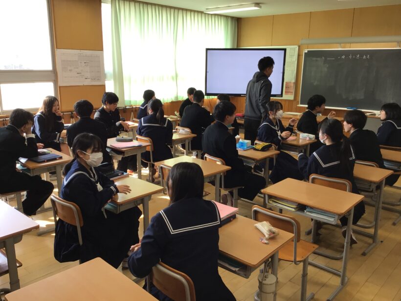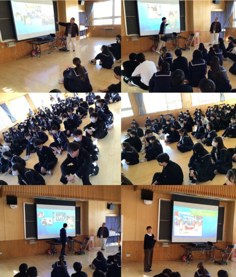 【2年生総合】職場体験を終えてキャリア教育として本日は2年の先生たちの中学時代と将来の夢を語る時間でした。中学時代の写真を使い、語ってくれる先生方の話には生徒の皆さんは今まで以上に目をキラキラさせて耳を傾けていました。本当に貴重な体験になったと思います。みなさんもこれkら将来の夢を見つけていきしょう。