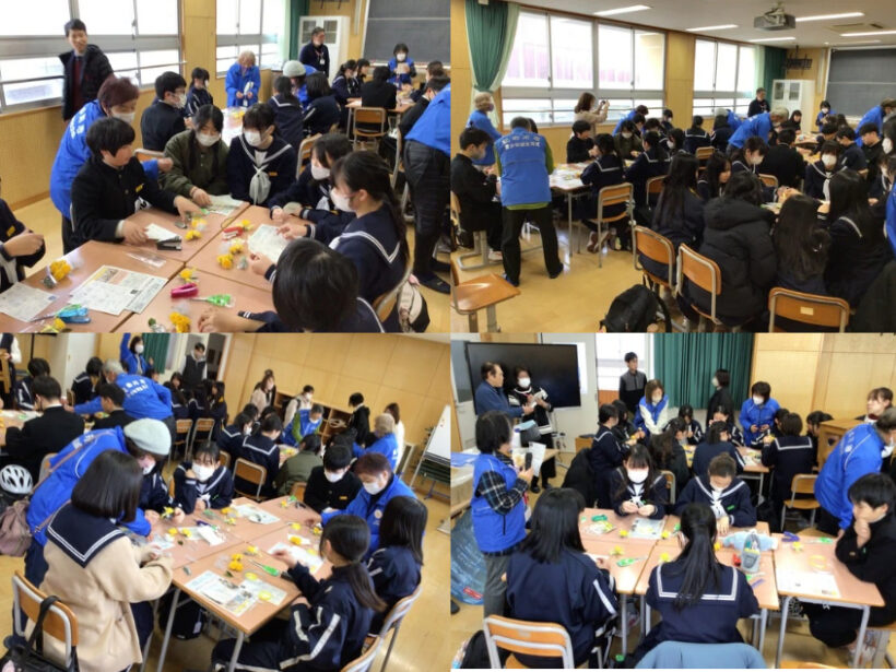 【コサージュ作り】生徒会が主催し、放課後に有志の生徒(48名)が多目的で卒業生のためのコサージュ作りに取り組んでくれました。青少年健全育成の方々が11名もボランティアで教えてくれました。優しく、わかりやすく教えていただいたので、綺麗に仕上がりました。本当にありがとうございます。😊生徒の皆さんの心のこもったコサージュを胸に卒業できるのが楽しみですね。