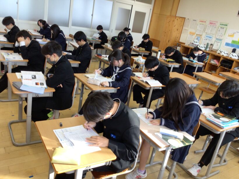 【3年生学年末テスト】1時間目は、中学校生活最後の試験勉強頑張ってました。張り詰めた空気感が素晴らしい。さすが受験生ですね。今がしんどい時期ですが、必ず頑張った分は自分に返ってきます。自分を信じてやり抜きましょう。応援しています*\(^o^)/*