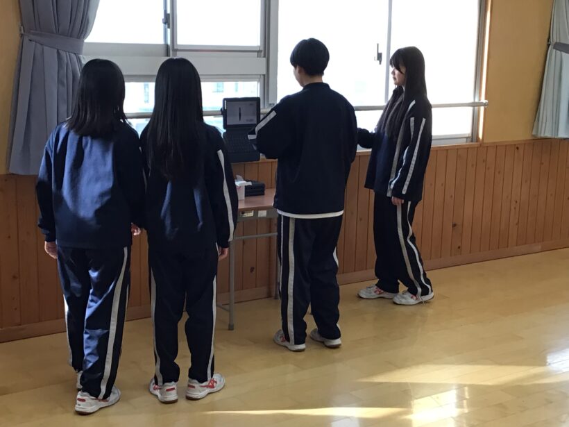 【1年生保健体育科】「きいちゃんダンスの動画」を視聴ながらグループで練習してました。少し恥ずかしそうにしていますが・・・。出来上がりが楽しみですね。