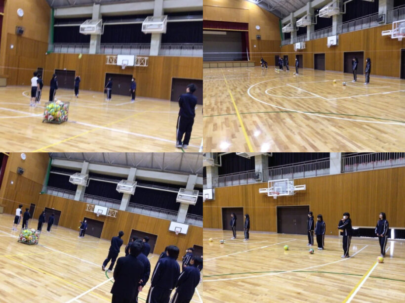 【2年生体育科】できるだけ「高い位置でボールをキャッチ」「ジャンプのリズムをとる」この2点の説明を受けて取り組んでます。私もスッテプの練習をしましたが、難しいですね。