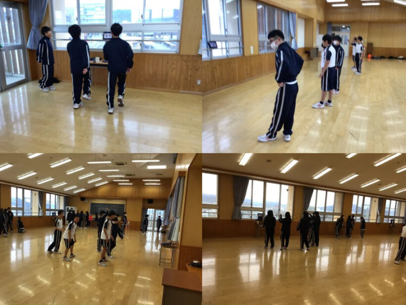 【1年生体育科】グループで動画を視聴しながらダンスの振り付けをみんなで試行錯誤しながら取り組んでます。得意な子が苦手な生徒に声を掛け合ってました。