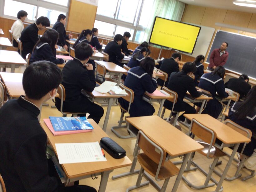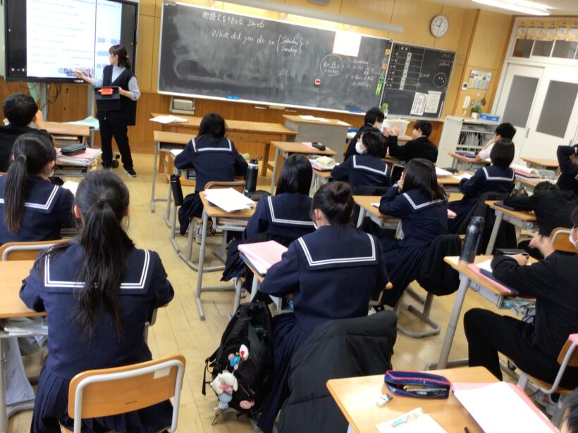 【3年生英語科】ALTの先生による英会話の学習です。お正月の過ごし方などの質問に上手に答えていましたね。