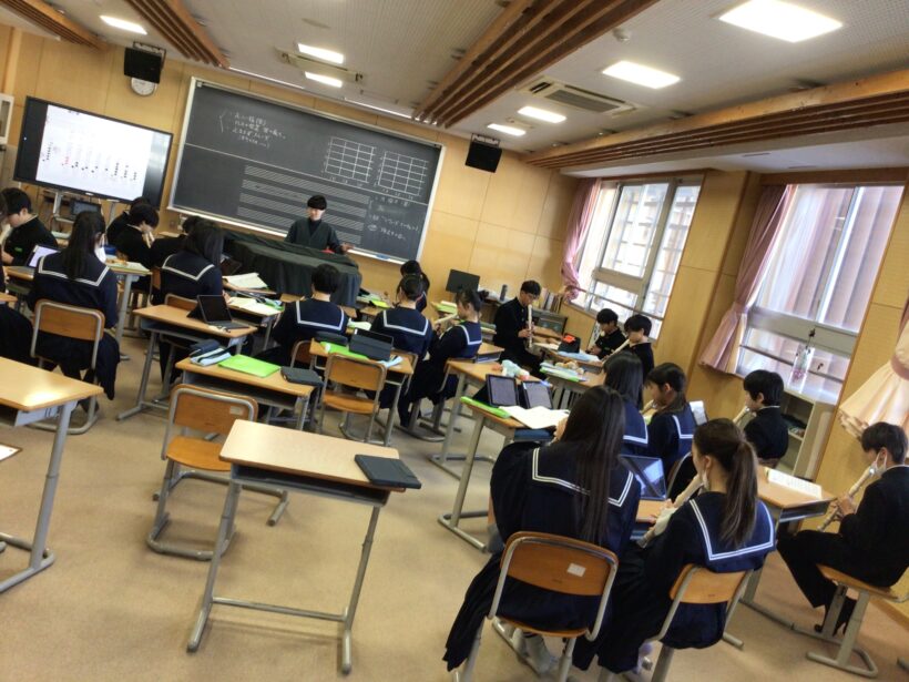 【2年生音楽科】アルトリコーダの練習です。さすが二年生。上手に演奏できる生徒が多くなっています。やはり二年間の成長は大きいです。
