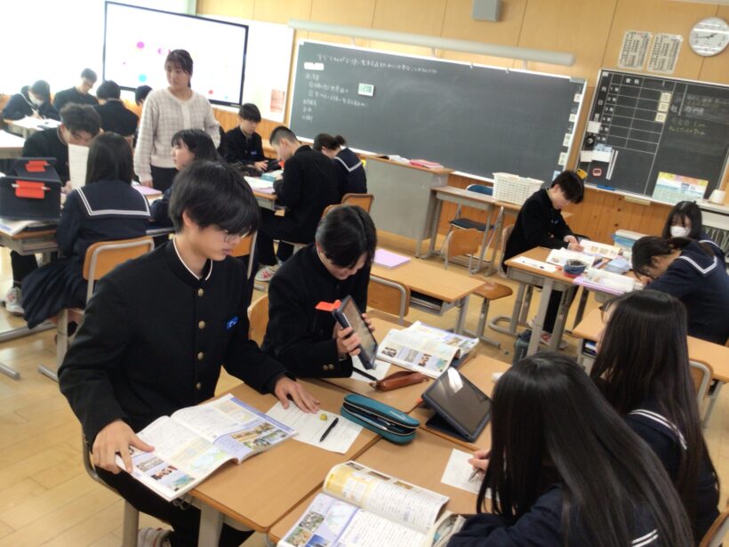 【3年生社会科】めあて「すべての人がより良い生活を送るために必要なことはなんだろう」の学習です。日本が行う世界協力を教科書から調べて、自分なりに解釈しまとめて、それをグループ内で発表しています。自分の学んだ知識をアウトプットすると知識のネットワークが広がりますね。