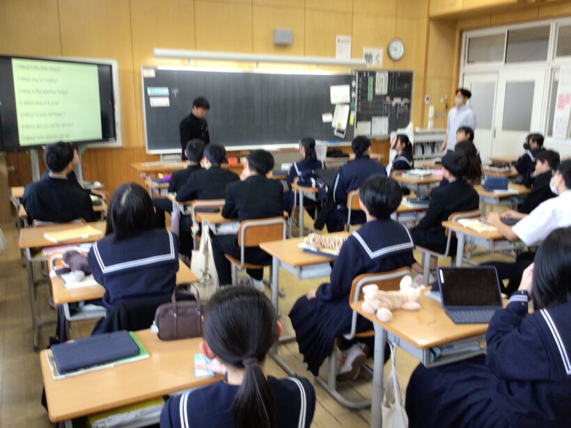 【1年生英語科】授業最初にルーティンの生徒同士が質問して、やりとりを行なっていました。英語はまず使うことが大切ですから、恥ずかしがらずに皆さん頑張っていきましょう。