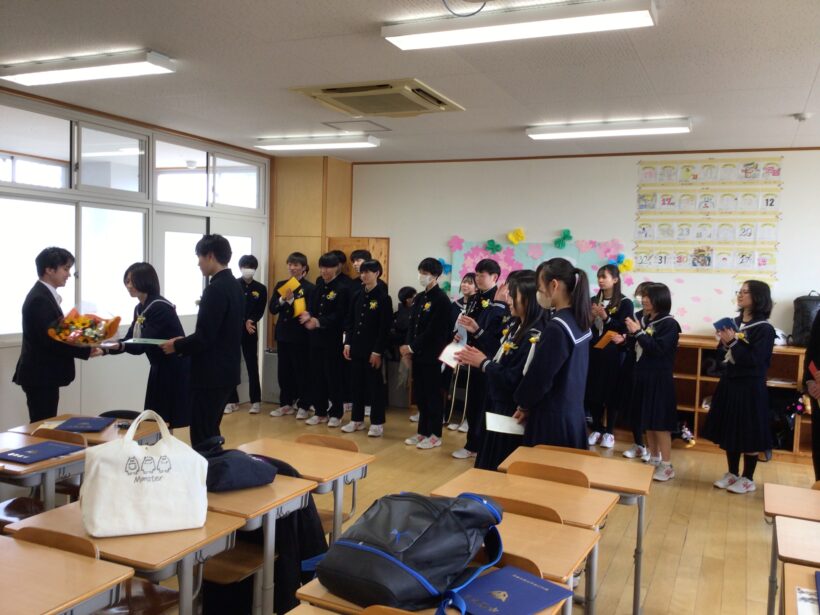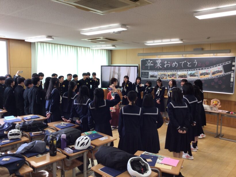 【3年4組】各クラスで担任による最後の学活がありました。3年間の思いをみんな噛み締めていました。これからの進路に向かい、自分を信じて頑張っていきましょう。卒業おめでとうございます。🌺