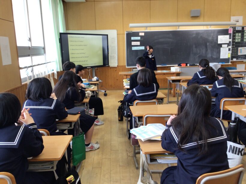 【1年生英語科】授業始まりにルーティンの定型の会話のやり取りを行ってました。頭をフル回転させてましたね。