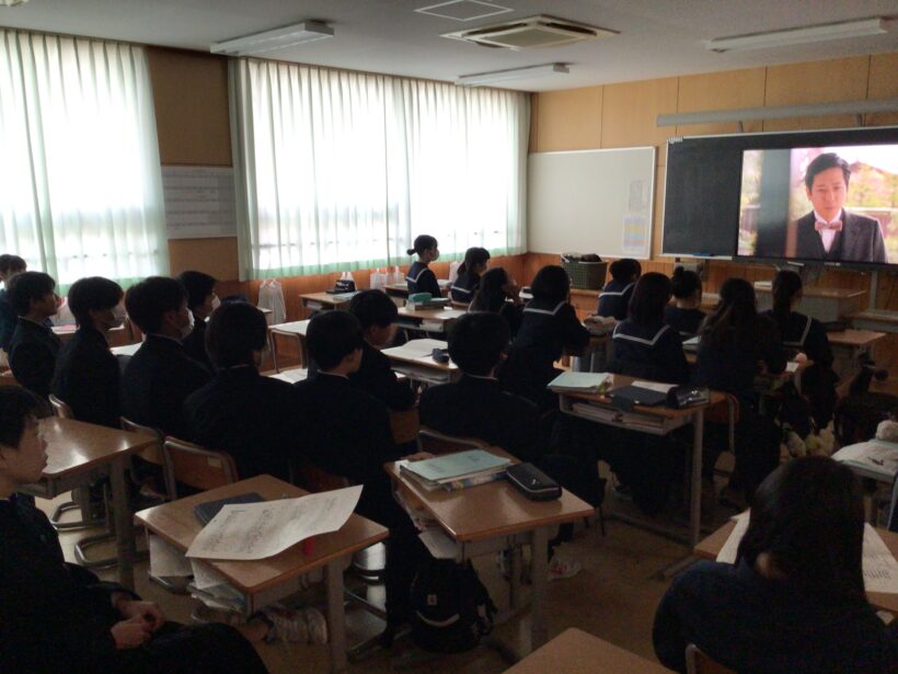 【2年生国語科】「夏目漱石『坊ちゃん』の学習で動画視聴中でした。嵐の二宮和也さんが主演なので興味を持つ生徒が多かったようです。時代背景がイメージできましたか?