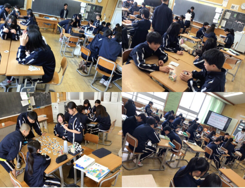 【1年生理科】学習のまとめとして理科用語のカルタとりに夢中です。あちこちで歓声が上がっていました。復習にもなるので、覚えていきましょう。